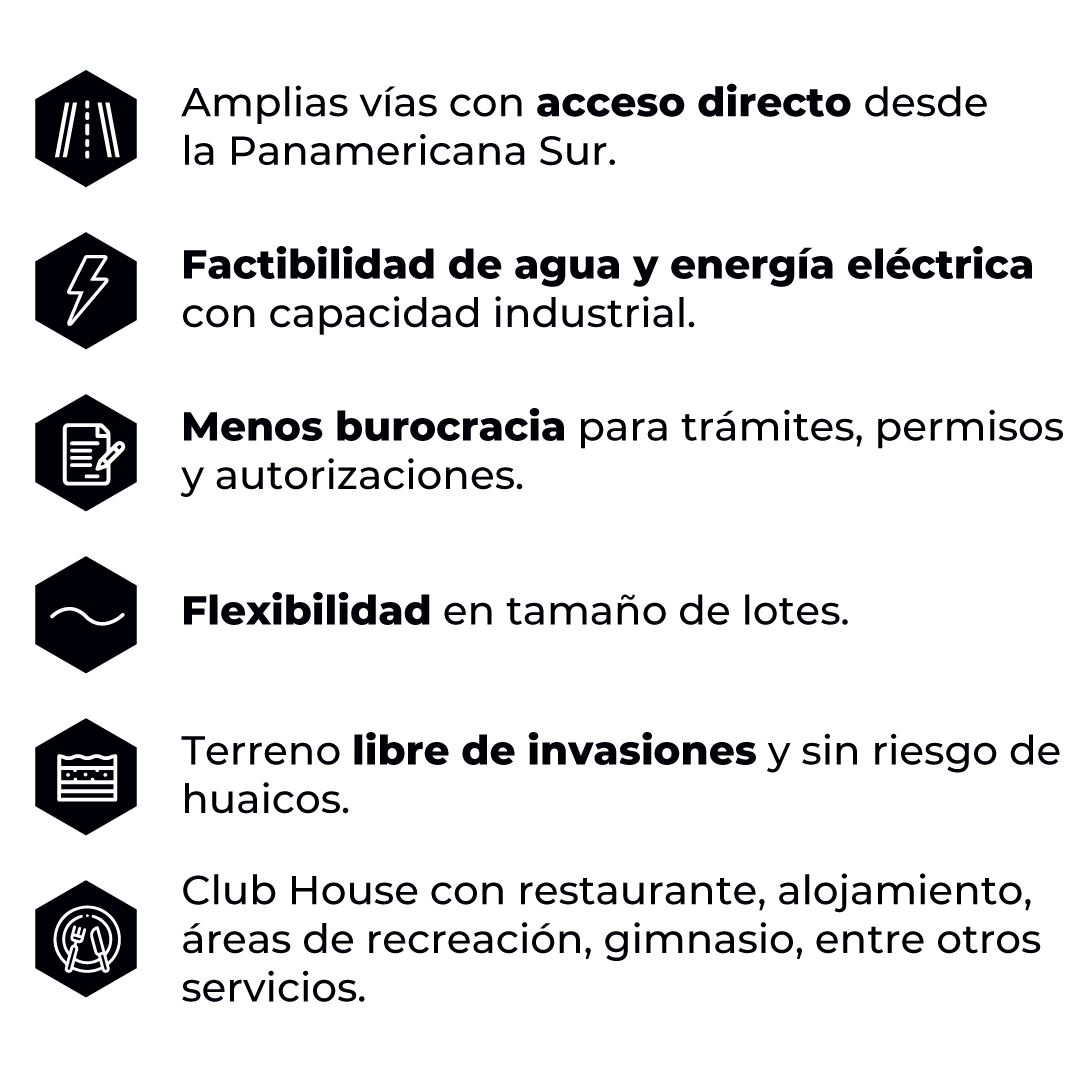 Este gran Parque Industrial se encuentra estratégicamente ubicado ya que posee una fácil conexión con Lima Metropolitana a una distancia aproximada de 40 a 50 min.